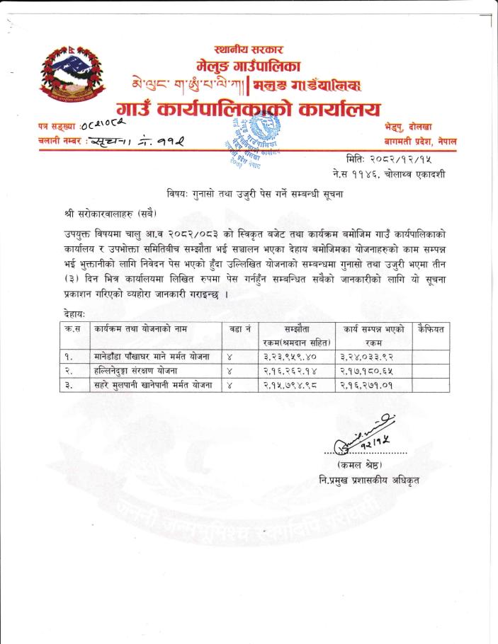 गुनासो तथा उजुरी पेश गर्ने सम्बन्धी सूचना।।