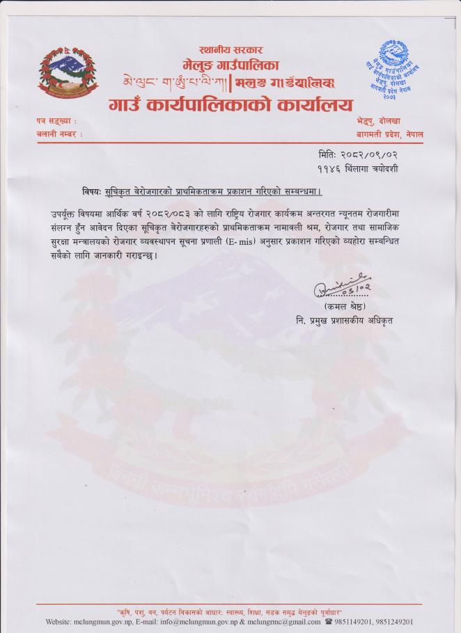 सूचिकृत बेरोजगारको प्राथमिकता प्रकाशन गरिएको सम्बन्धमा।
