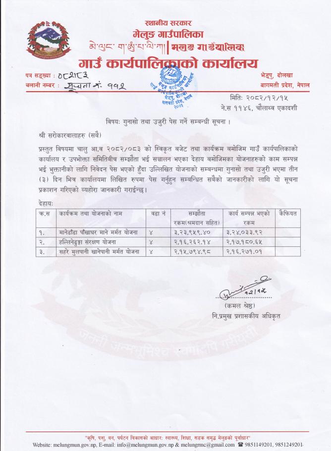 गुनासो तथा उजुरी पेस गर्ने सम्बन्धी सूचना।।