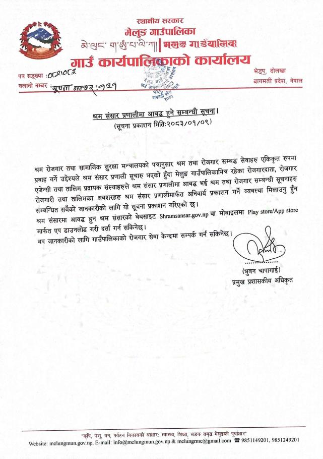 श्रम संसार(Shramsansar)प्रणालीमा आबद्ध हुने सम्बन्धी सूचना !!